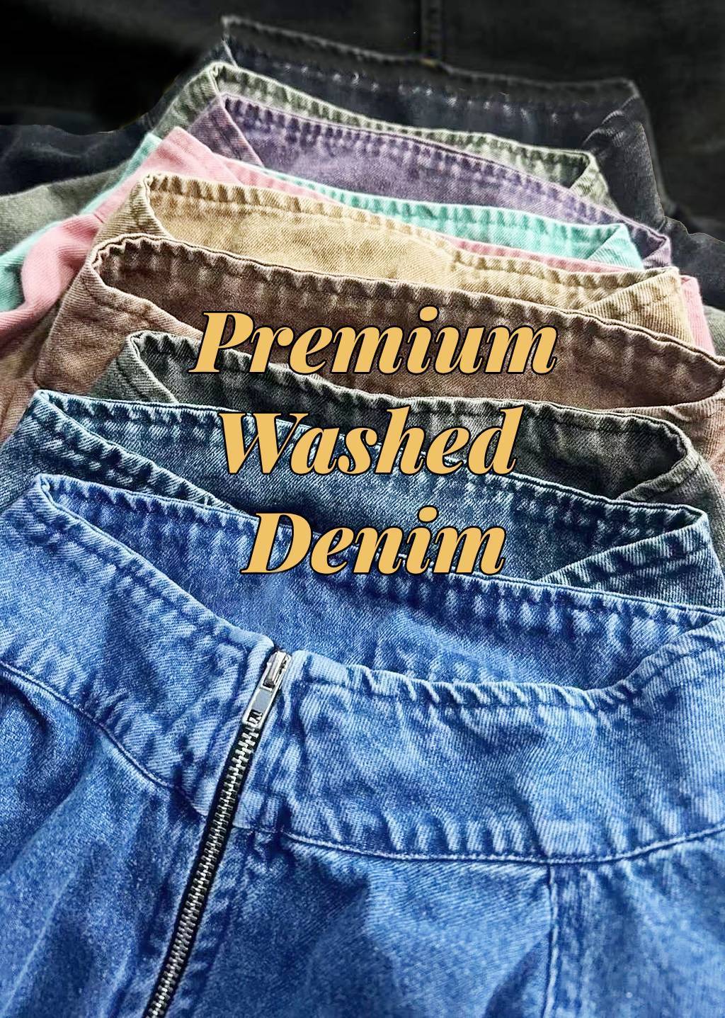Men's Retro Denim Fashion Distressed Raglan Sleeve Stand Collar Long Sleeve Top