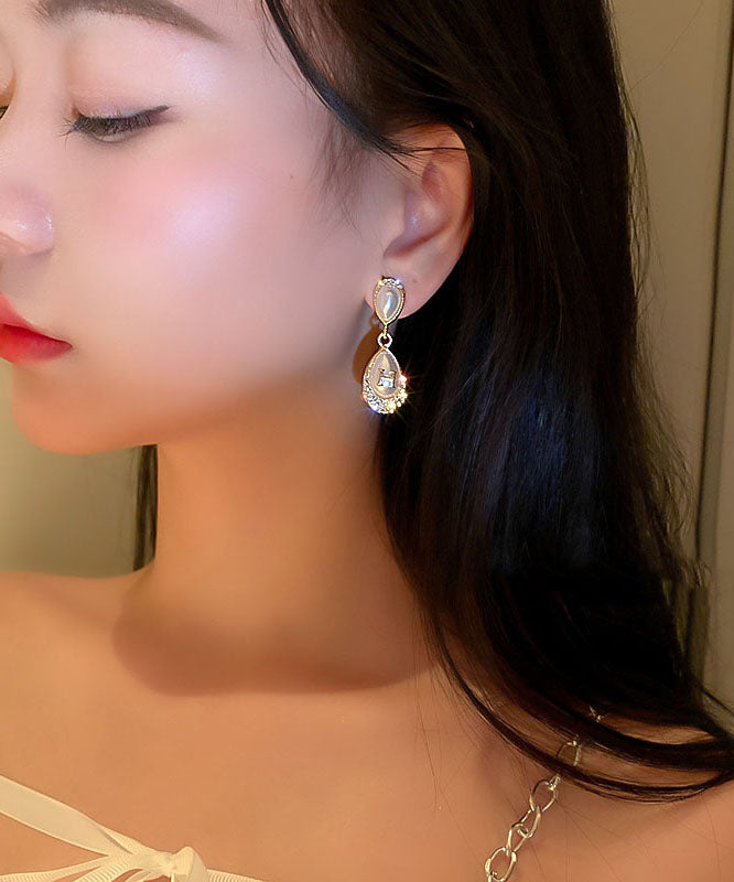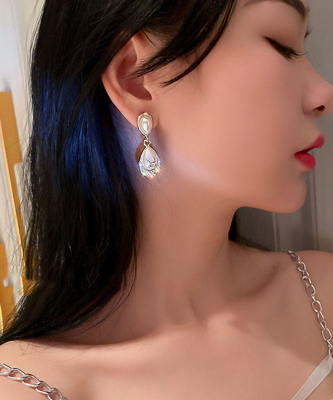 Pendientes modernos de aleación de oro con diseño de circón y perla en forma de gota de agua