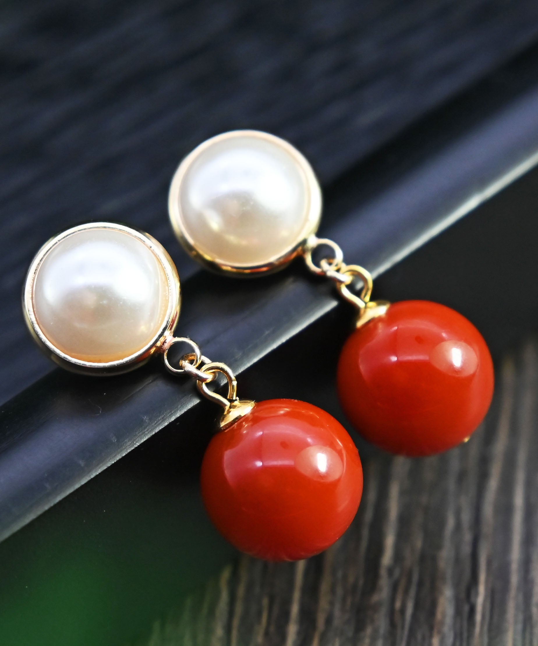 Pendientes modernos de plata de ley roja dorada con incrustaciones de gemas y perlas