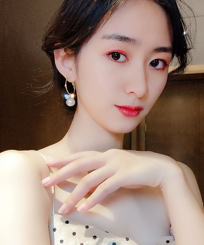 Pendientes modernos de plata de ley blanca con circonitas y perlas