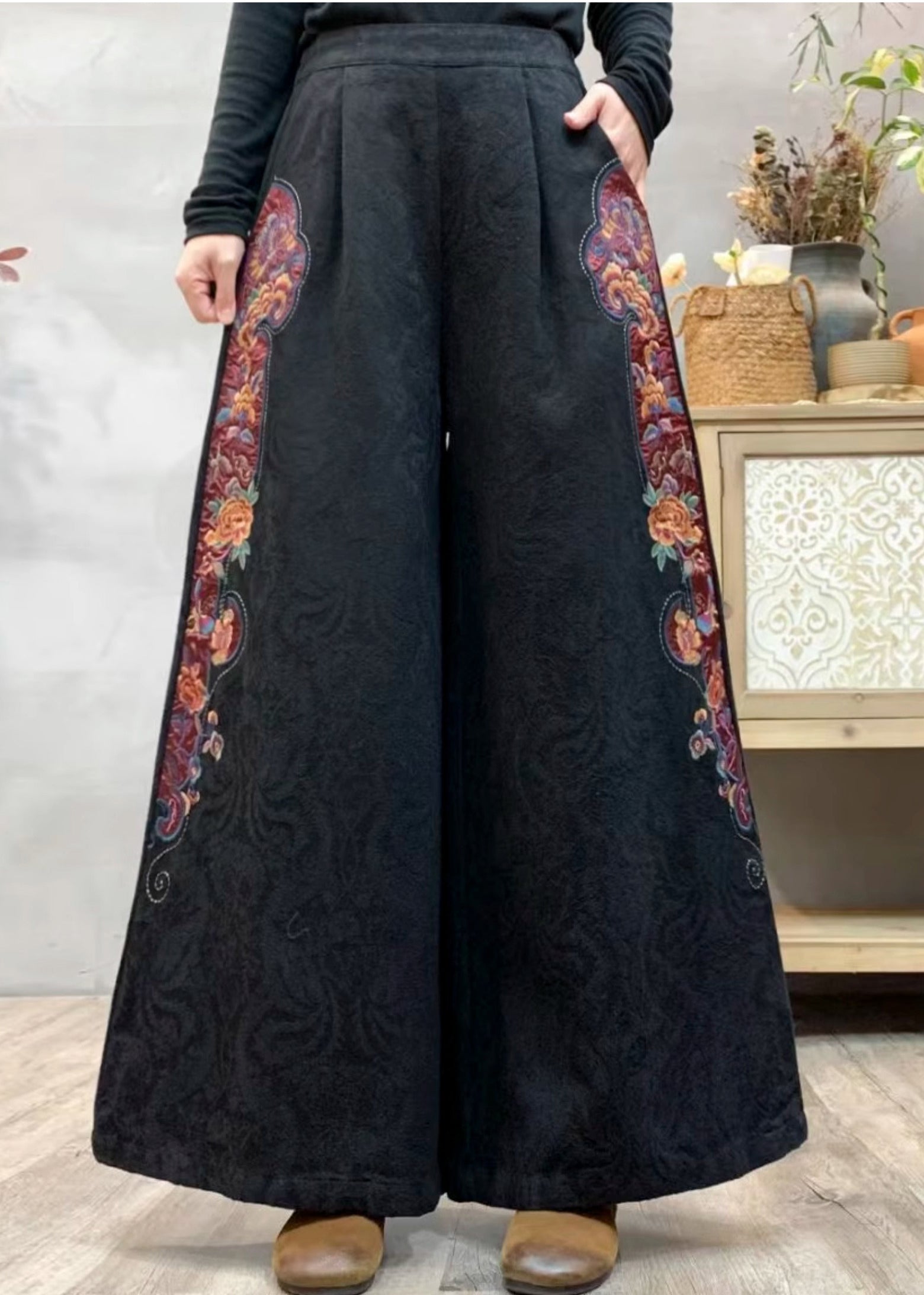 Natural Red Embroidered Jacquard Linen Straight Pants Spring