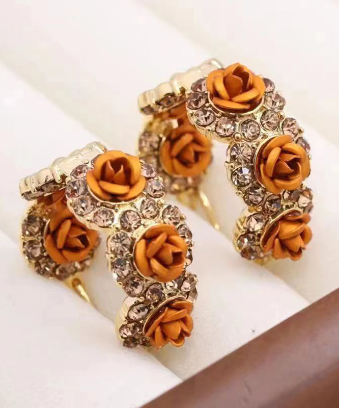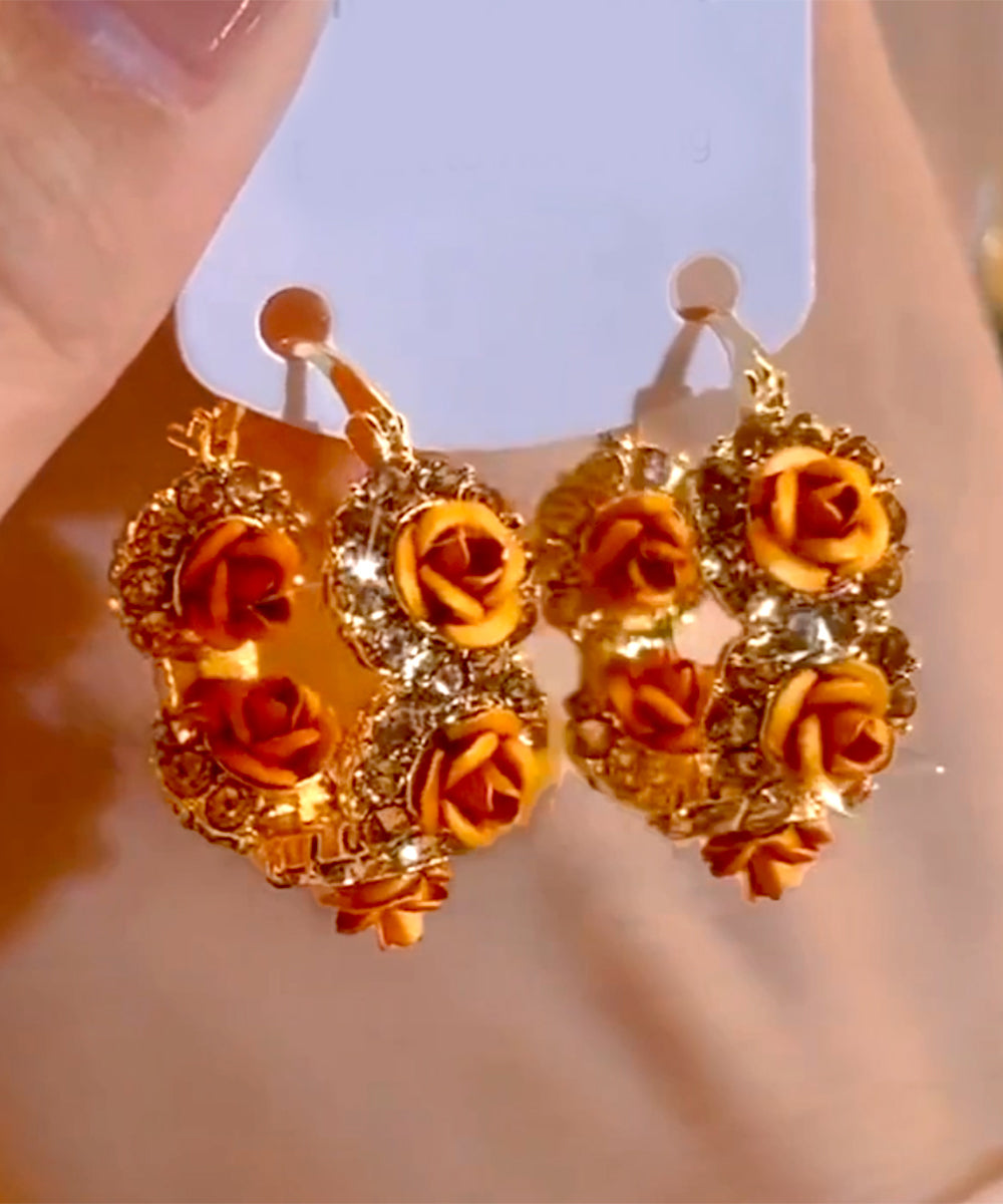 Pendientes de aro con circonitas rosas y aleación de oro champán novedosos