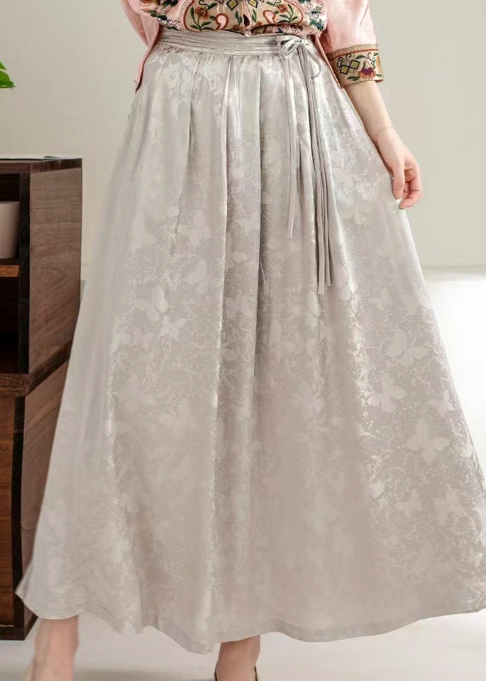 Organic Grass Green Jacquard Silk Holiday Skirts Spring
