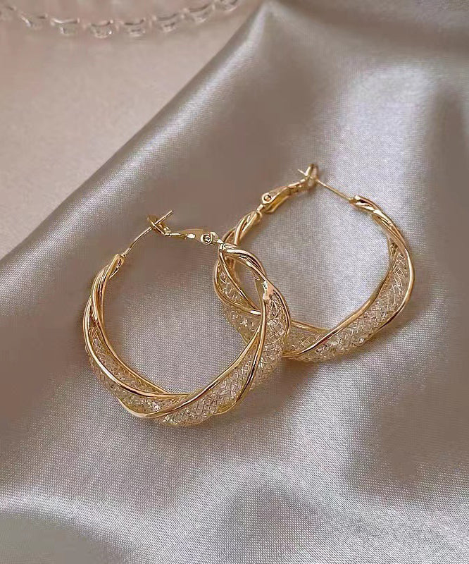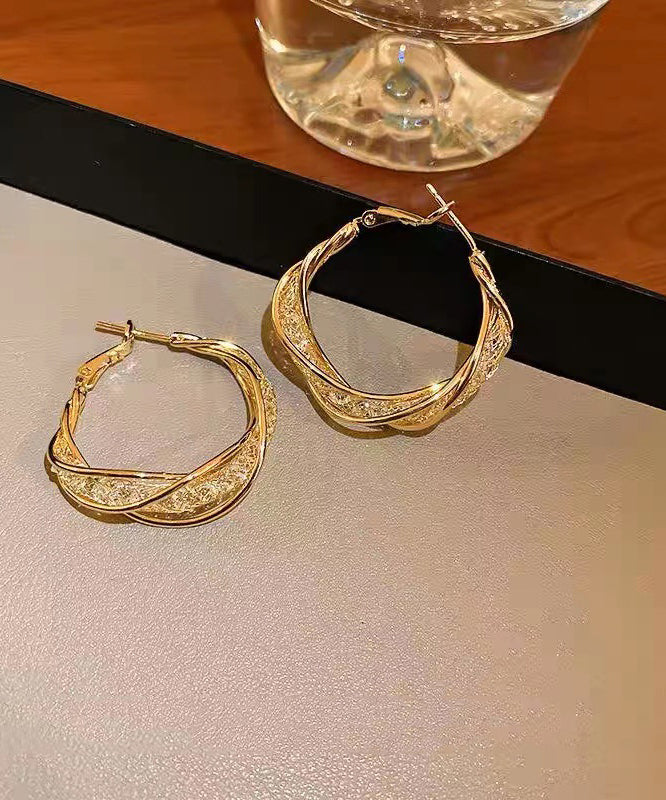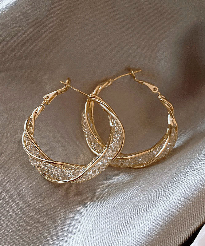 Pendientes de aro extragrandes de plata de ley dorada con cristales dorados