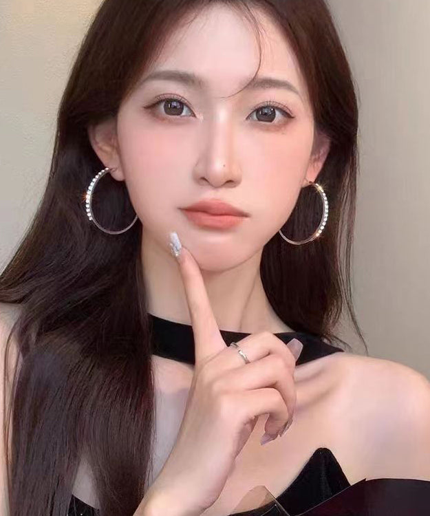 Pendientes de aro de circonita de metal de gran tamaño