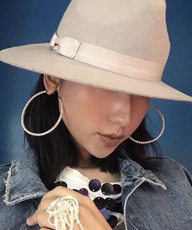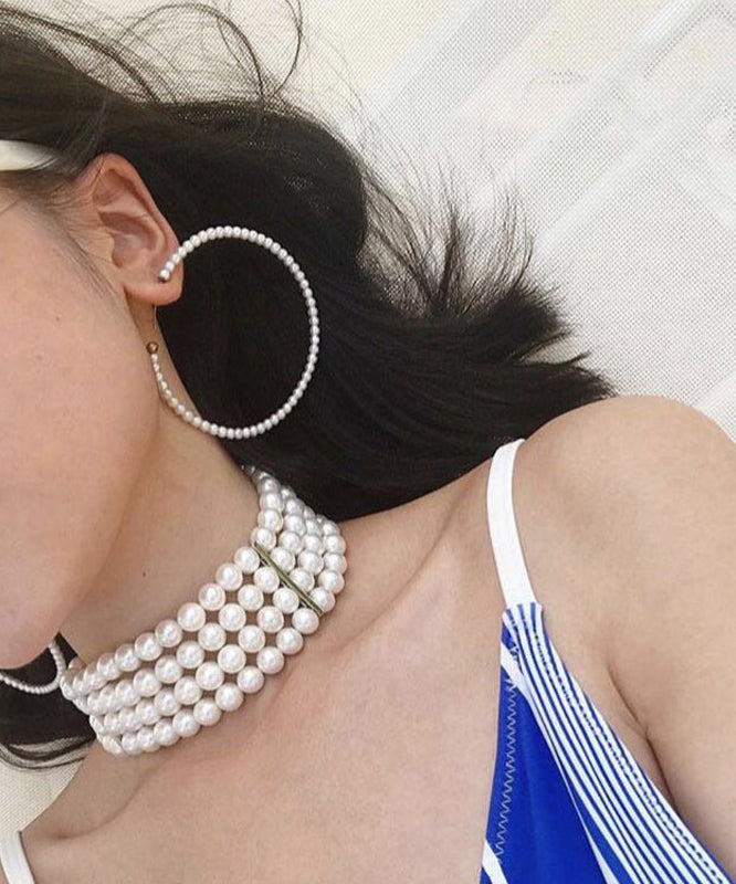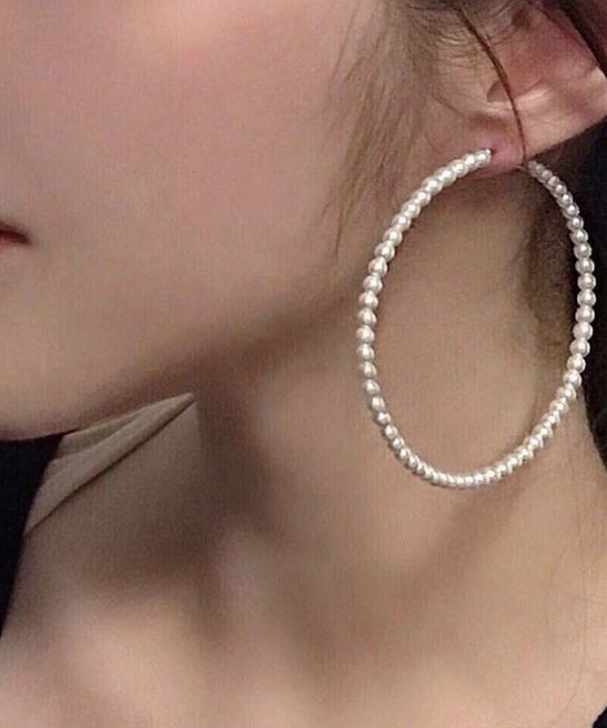 Pendientes de aro circulares de perlas blancas de gran tamaño