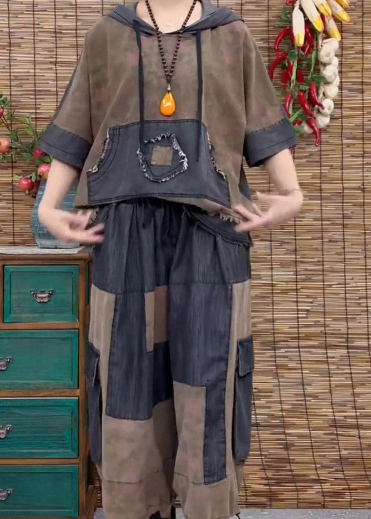 Conjunto de dos piezas de top con capucha y pantalones anchos de talla grande con parches azules para verano