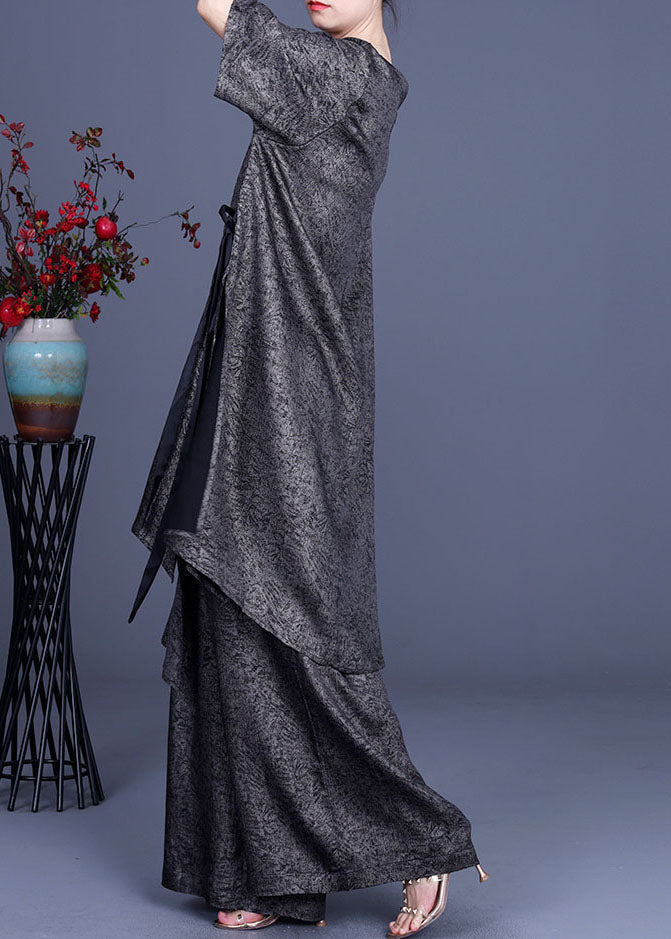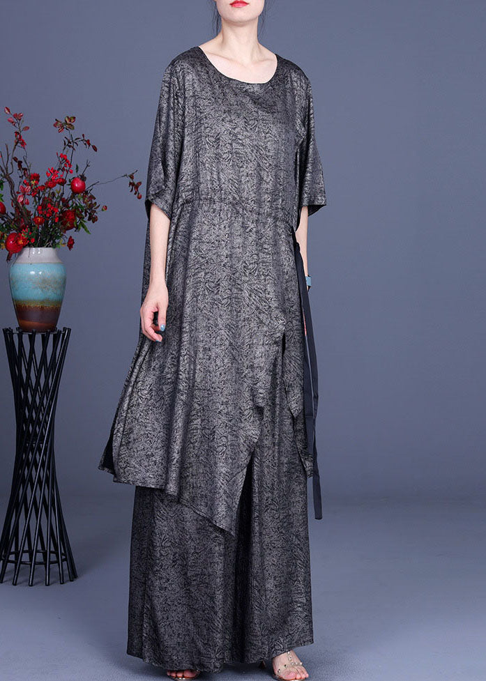Conjunto de dos piezas con lazo asimétrico en la cintura de color caqui de talla grande para primavera