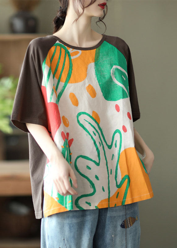 Camisa con abertura lateral y estampado azul marino de talla grande, media manga