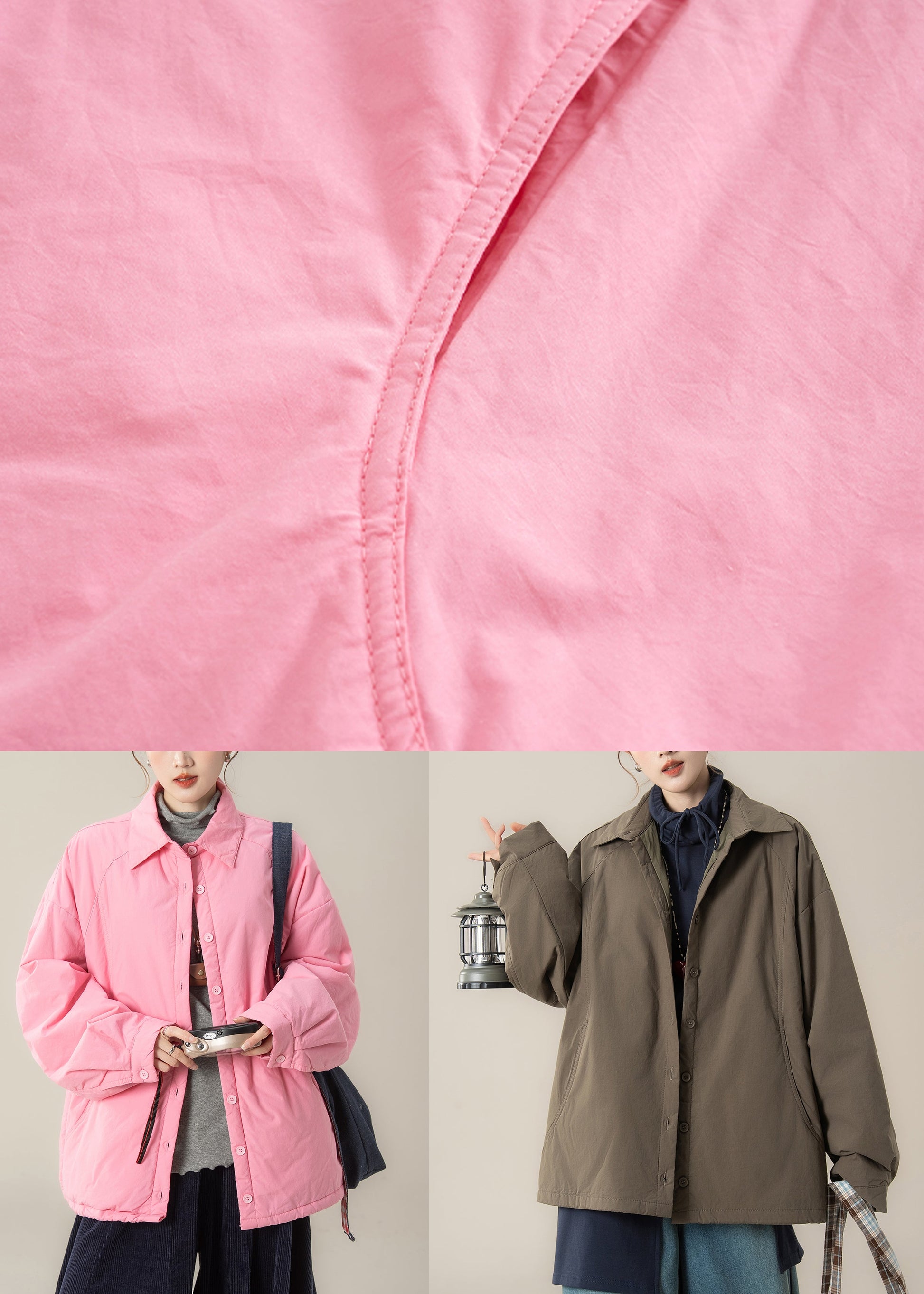 Camisas de algodón con cuello Peter Pan y bolsillos de talla grande, color rosa, para invierno