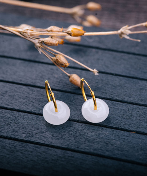 Pendientes de aro con hebilla de jade y plata de ley en oro regular