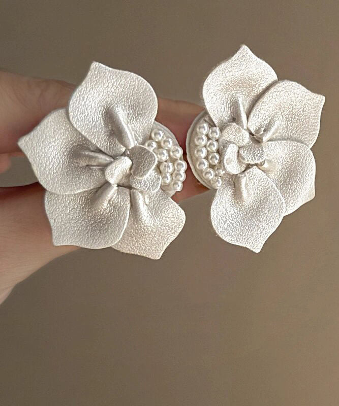 Pendientes de botón con perlas de jazmín de cuero sintético rojo regular