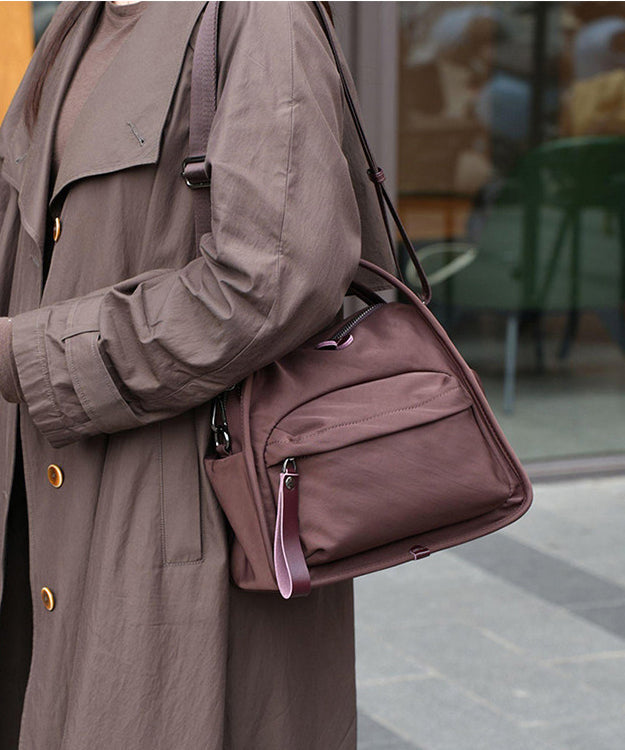 Retro Coffee Solid Durable Nylon Versatile Women Handbags