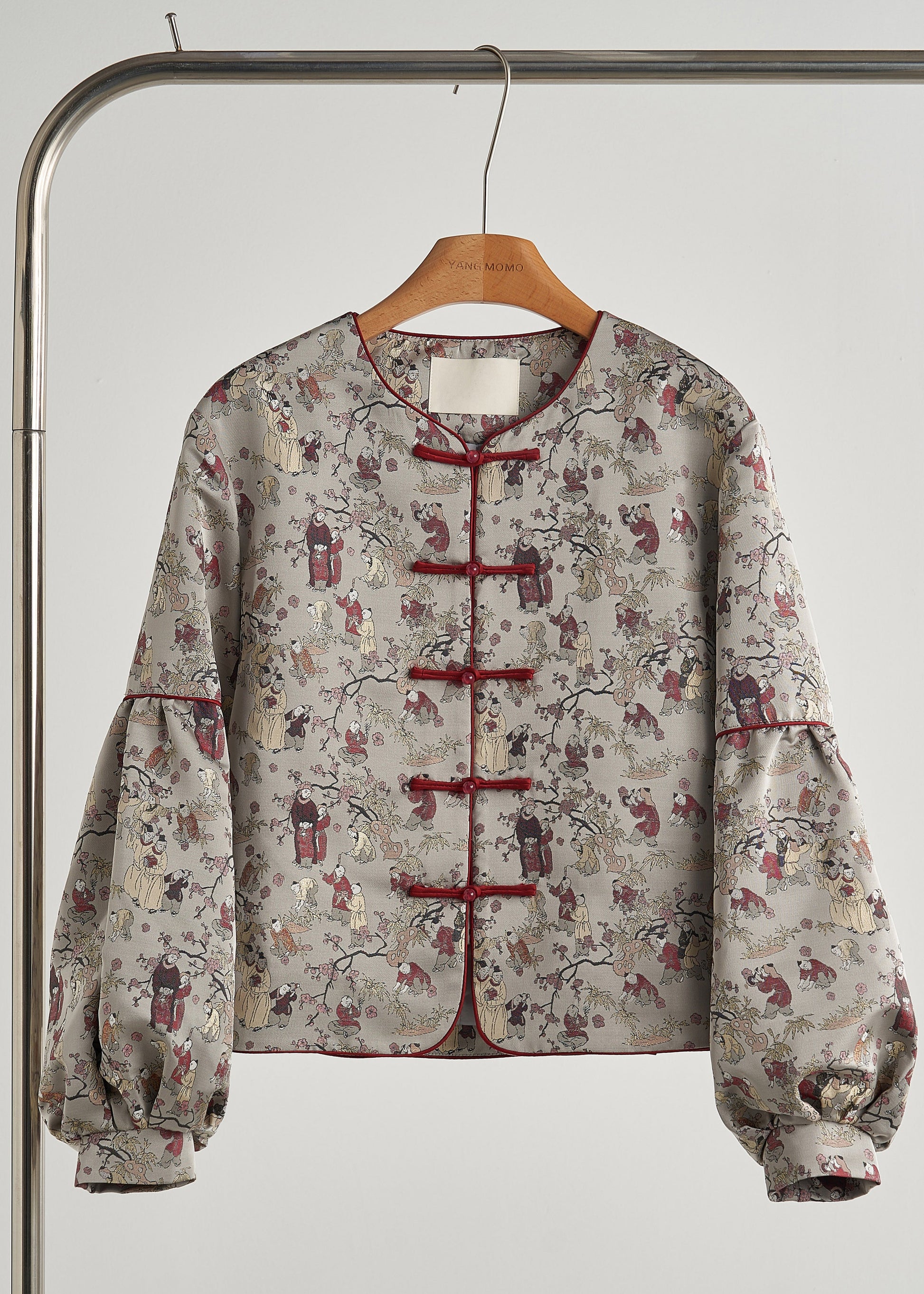Chaqueta oriental de algodón con estampado oversize gris retro para primavera