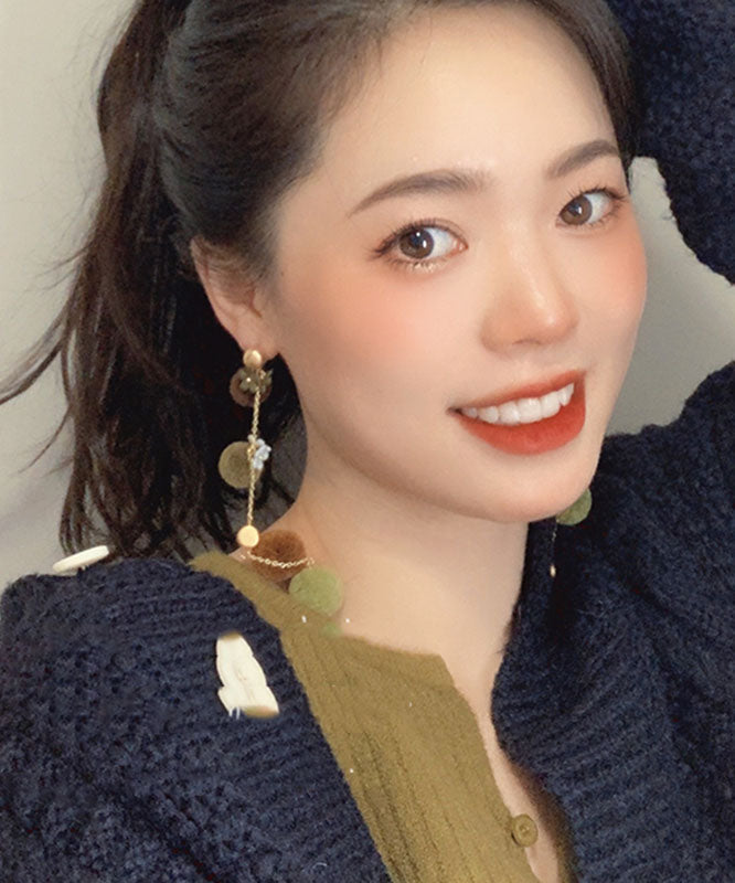 Pendientes sexys de resina con bolas peludas de cobre dorado y múltiples capas
