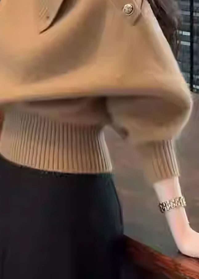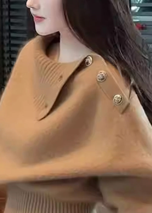 Suéter de punto acogedor con botones de café sencillo para invierno
