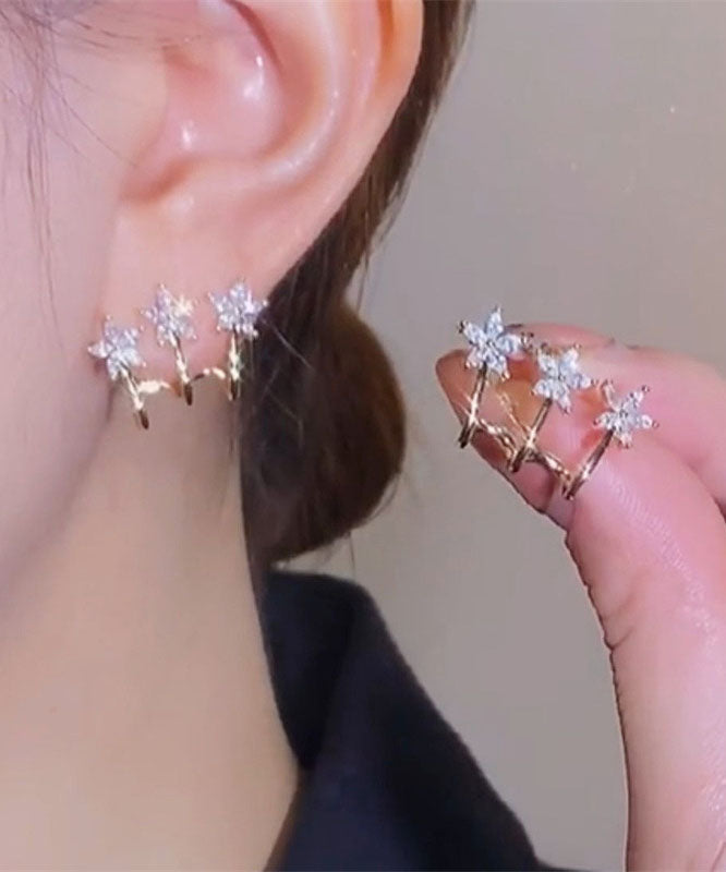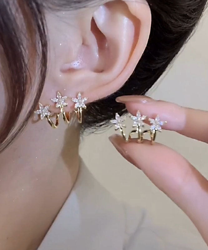 Pendientes de aro sencillos de plata de ley dorada con circonitas florales