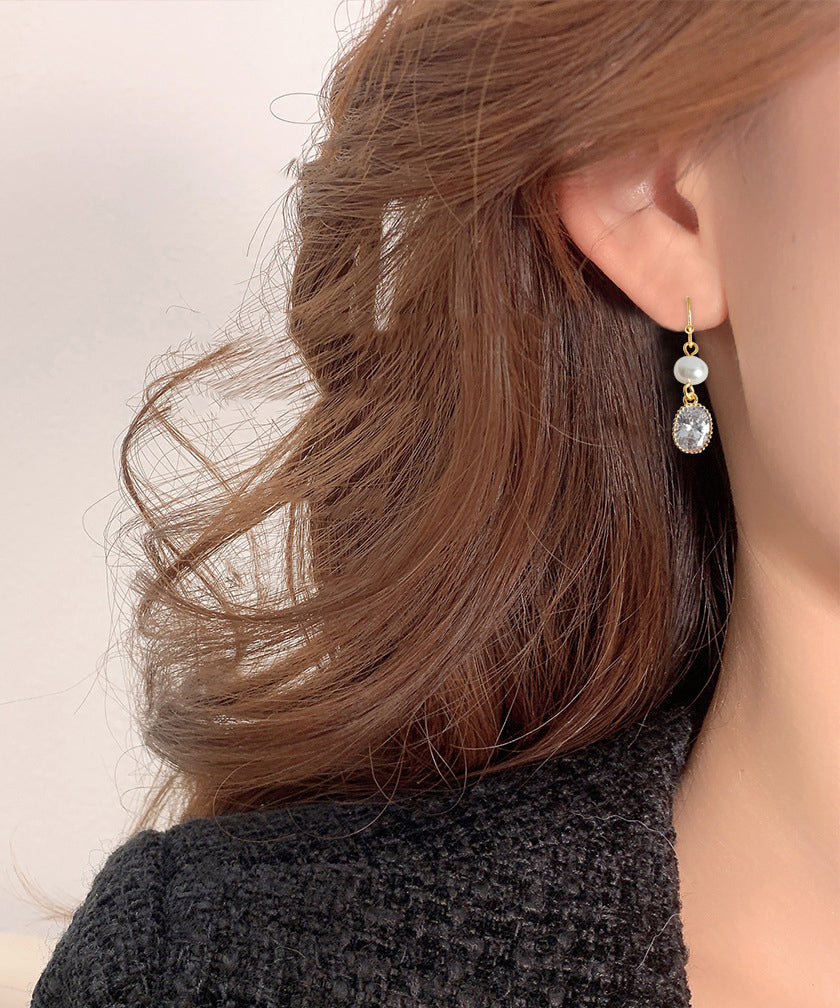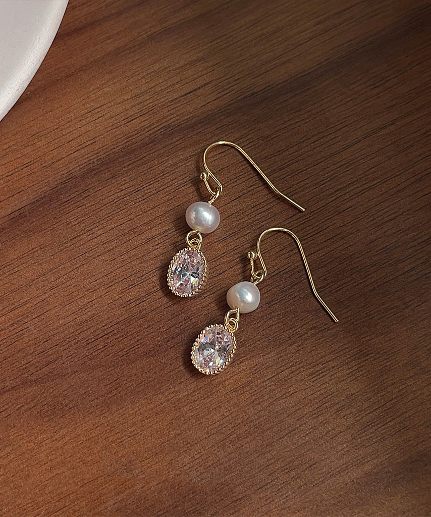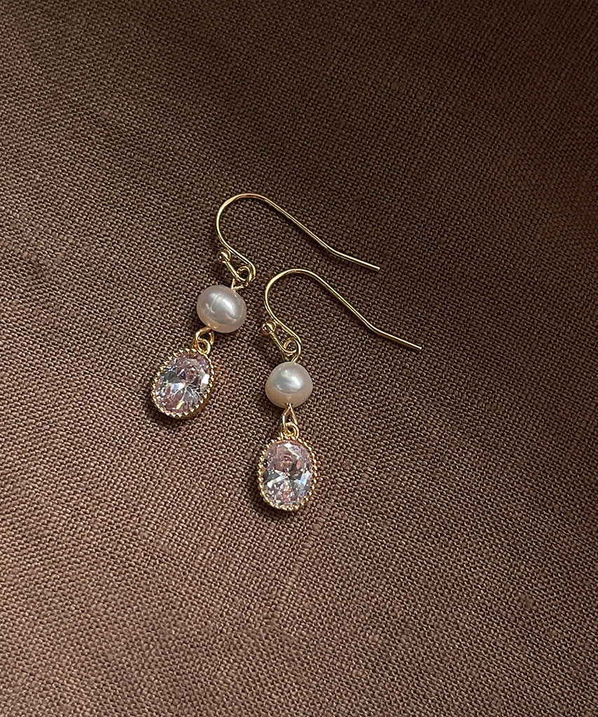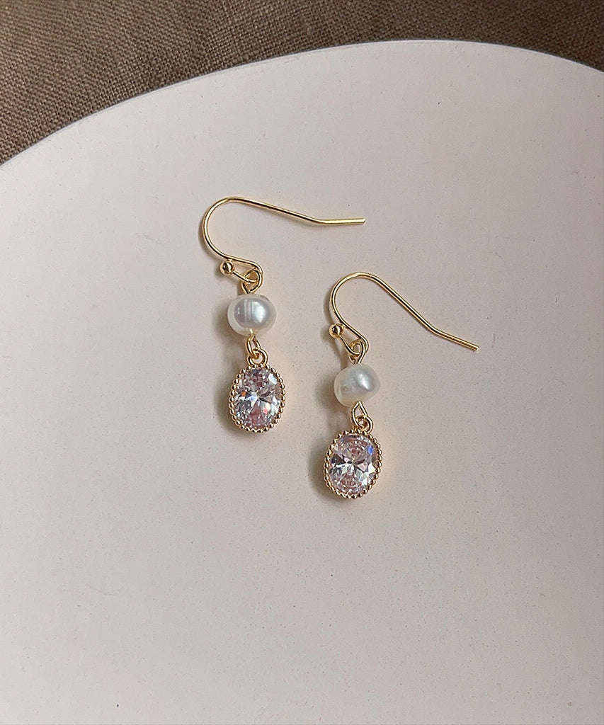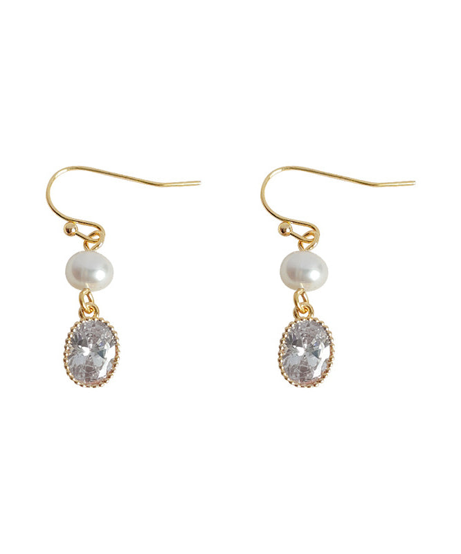 Pendientes colgantes geométricos de perla y circonitas en plata de ley dorada y dorada