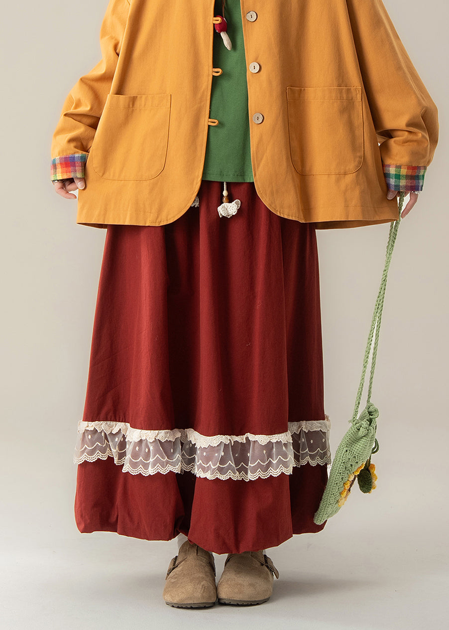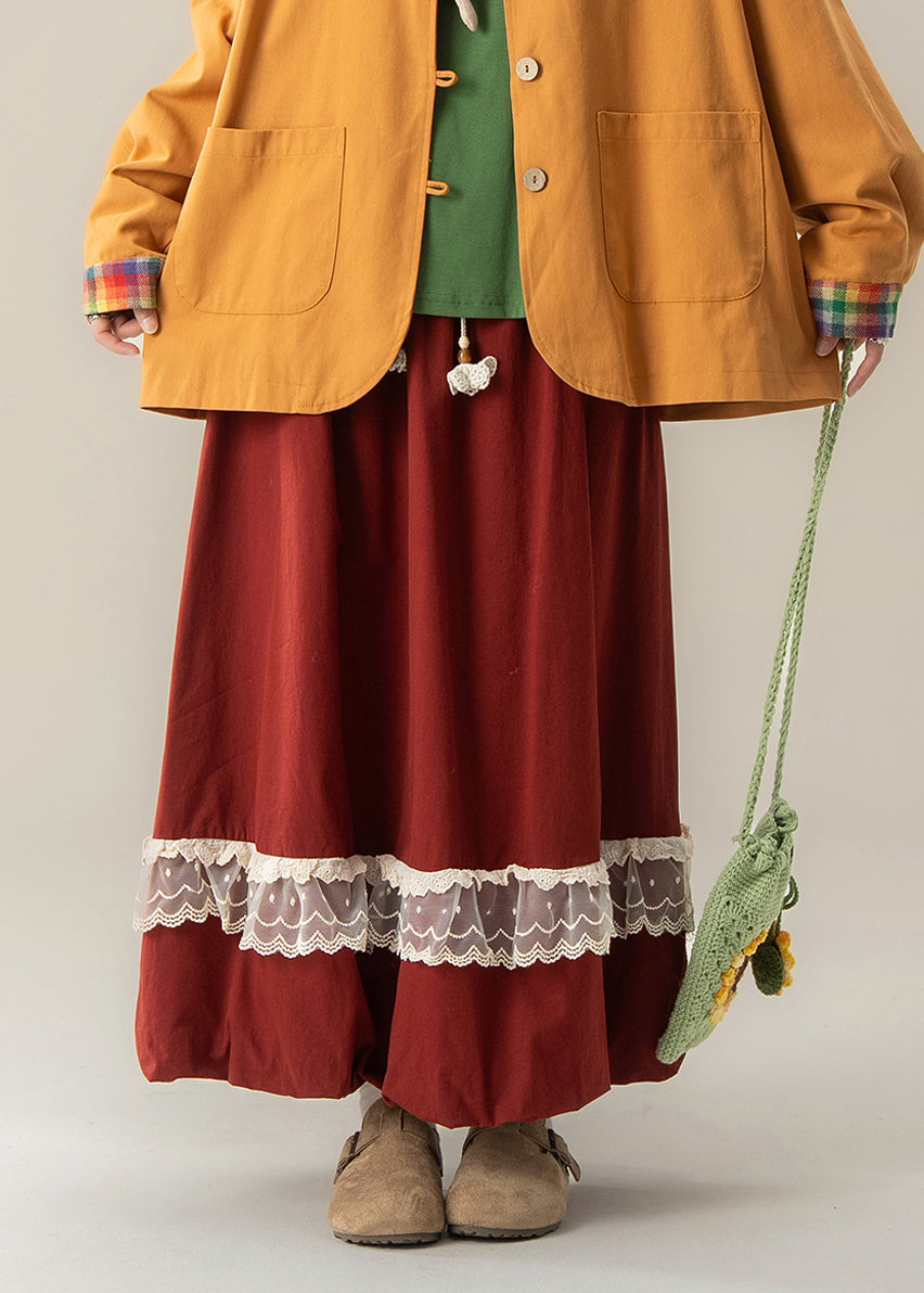 Falda de encaje con retazos y cintura elástica roja sencilla para vacaciones de primavera