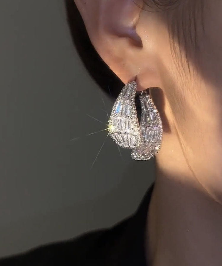 Pendientes sencillos de aleación de seda con forma de gota de agua y arco de circonita