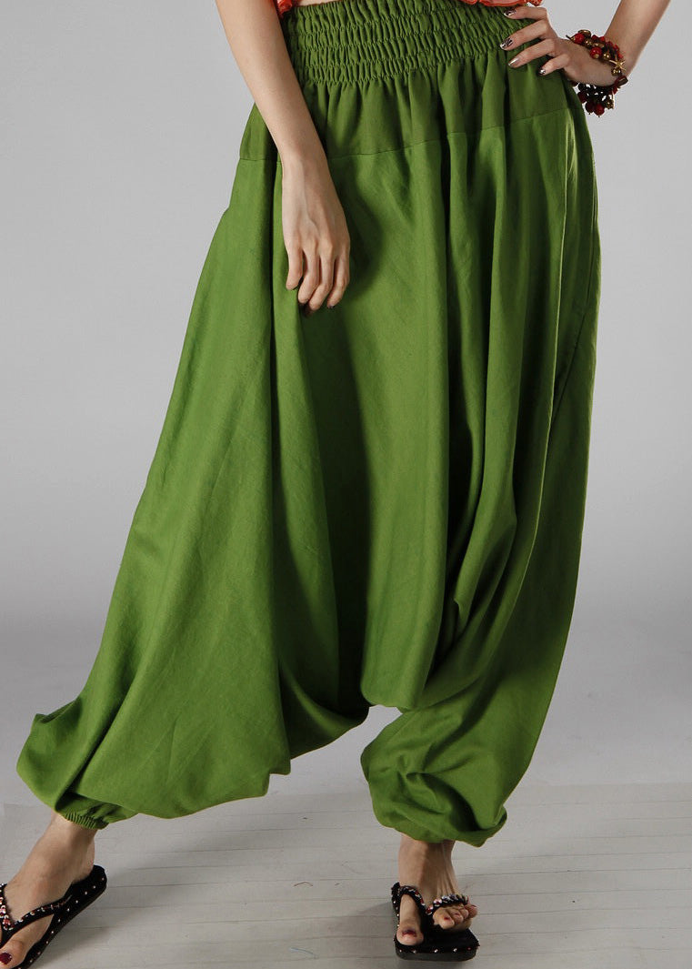 Pantalones de verano de algodón liso con cintura elástica en color blanco sencillo