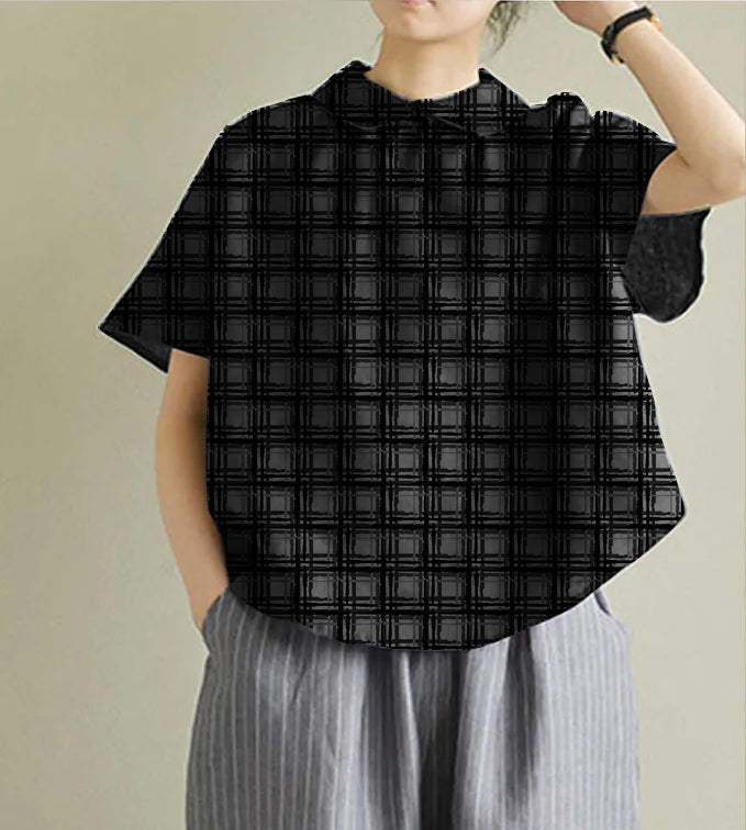 Camisa sencilla de lino liso con cuello Peter Pan blanco para verano