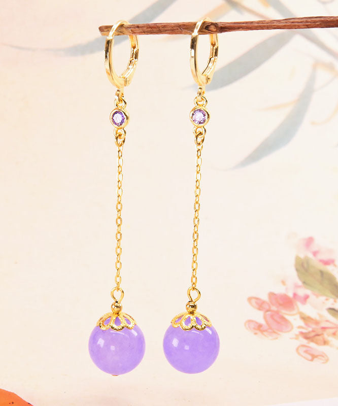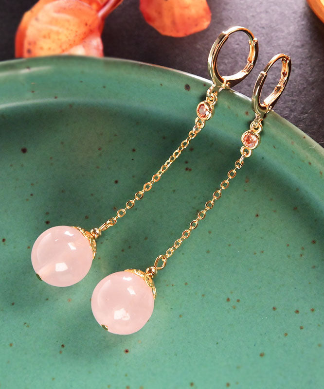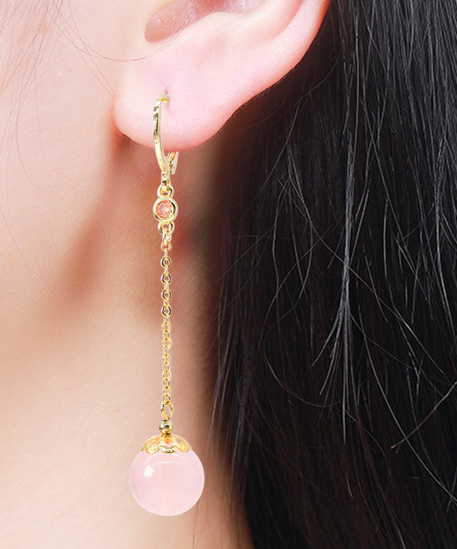 Pendientes finos de plata de ley rosa con cristales dorados y circonitas