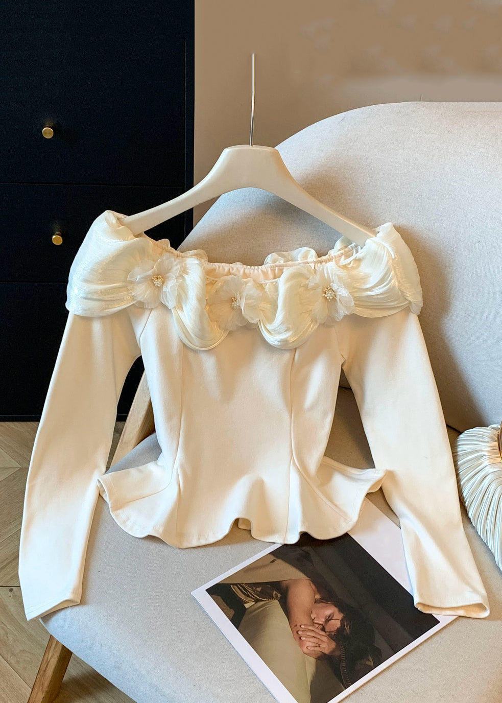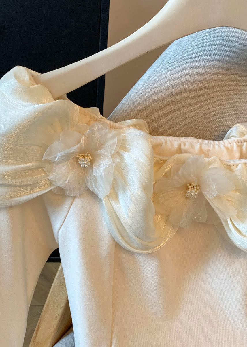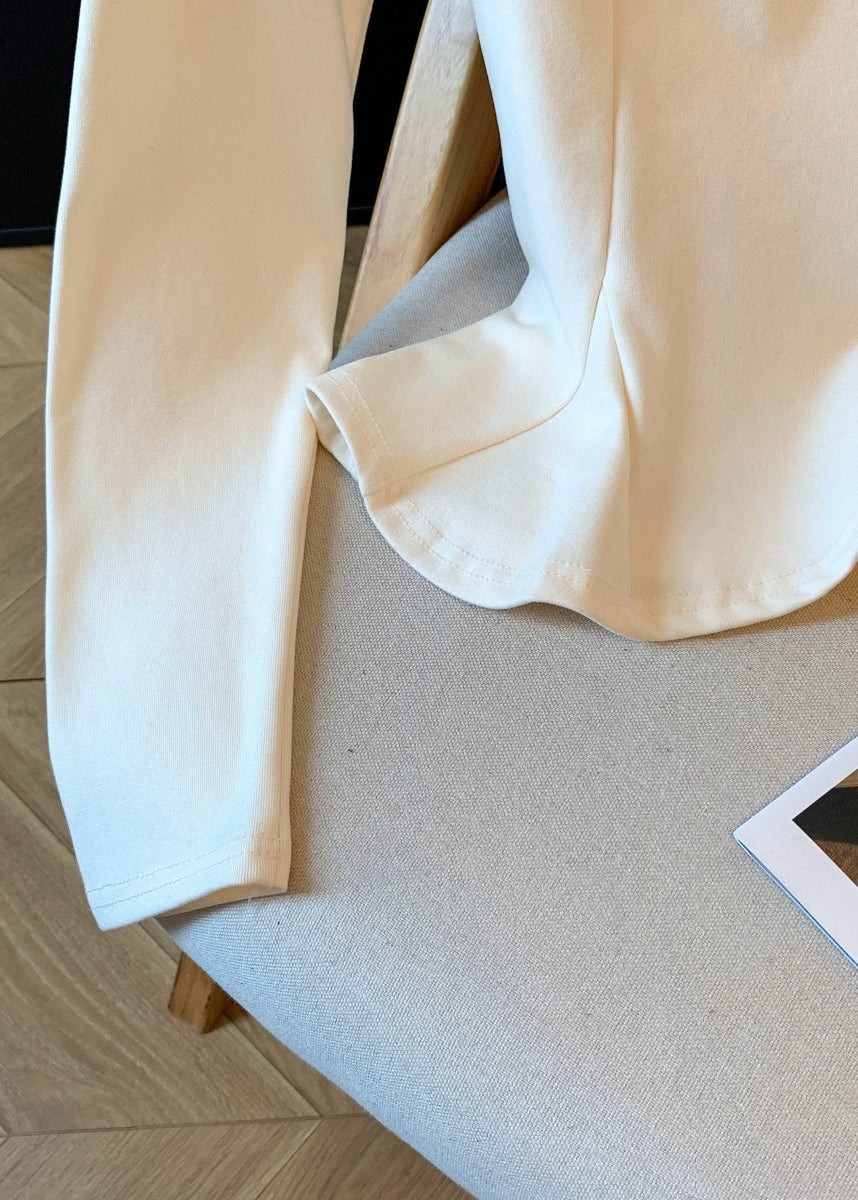 Slim Fit Apricot Floral Wrinkled Patchwork Cotton T Shirt
