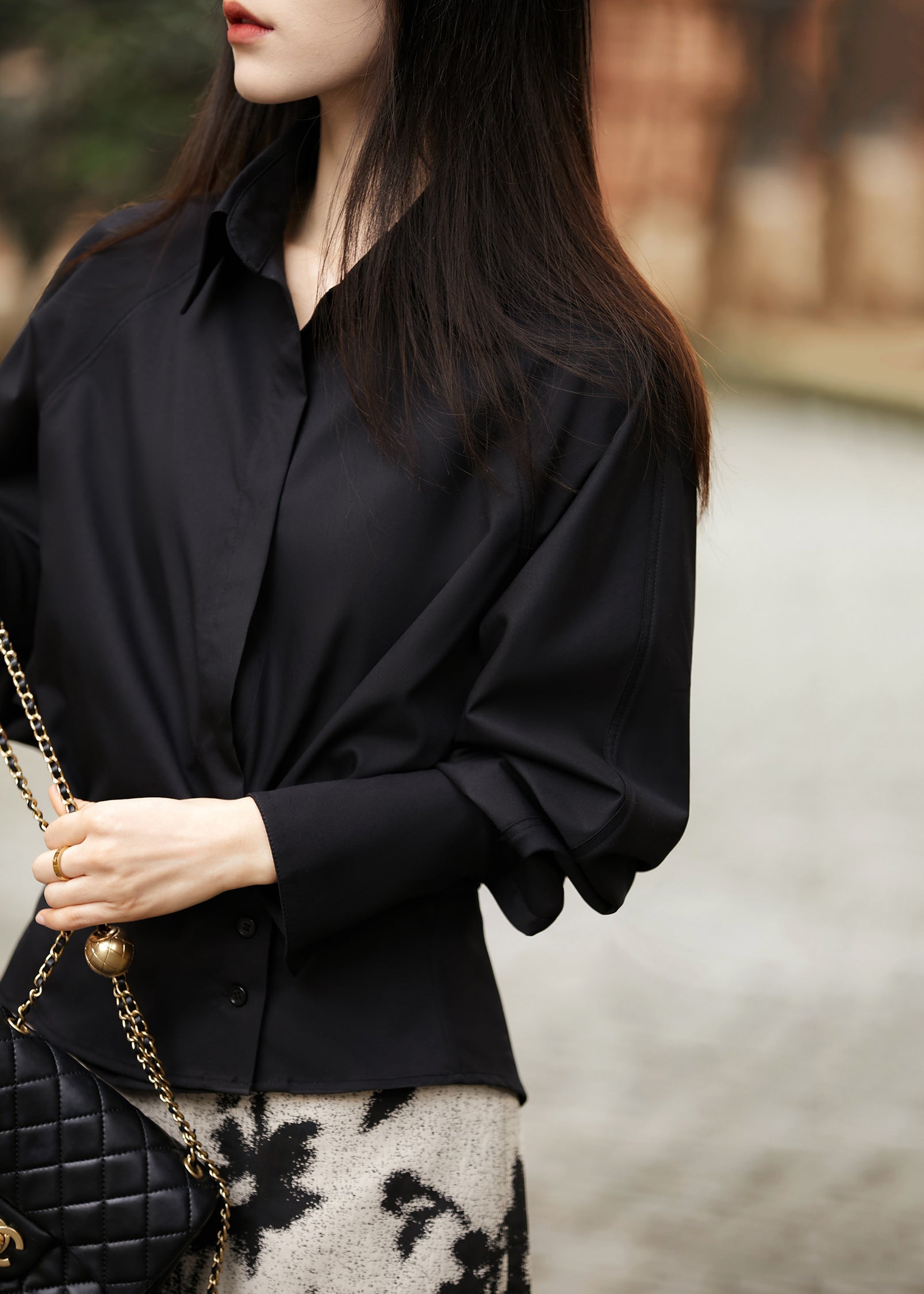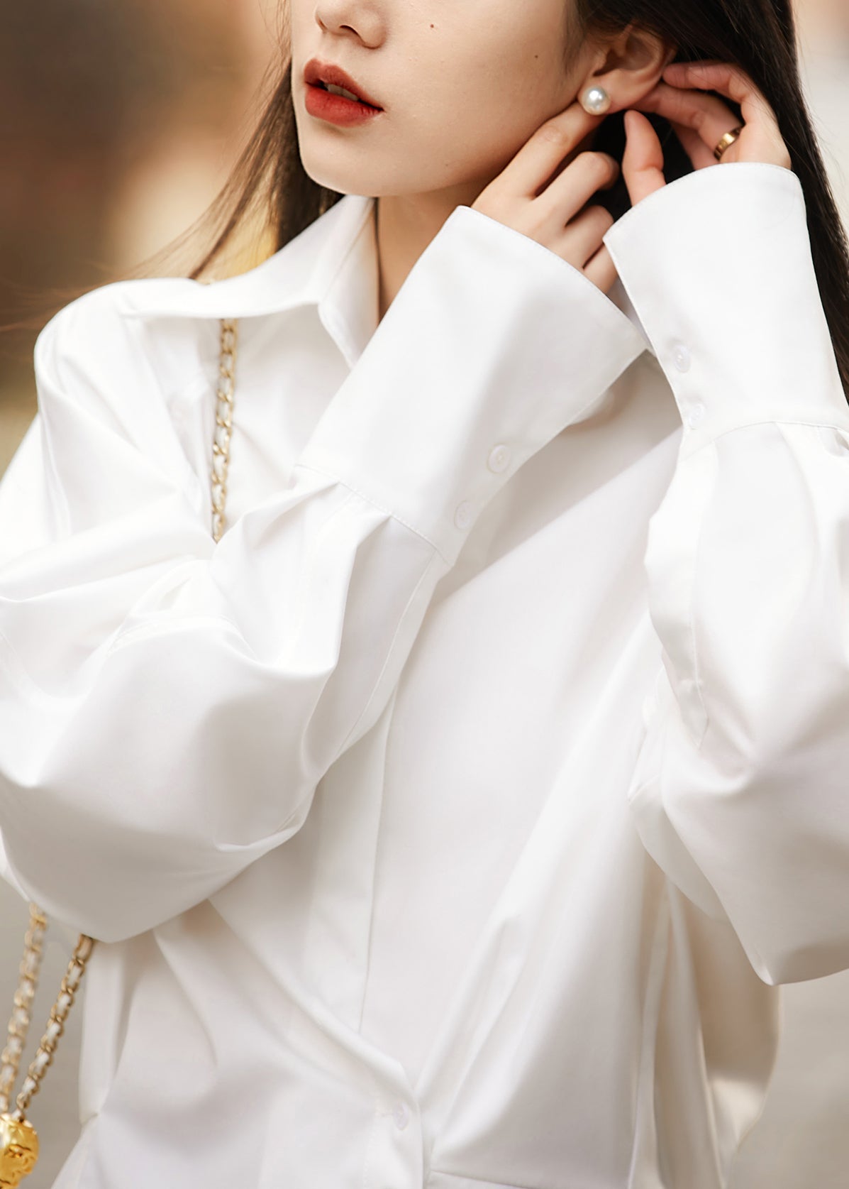 Camisa de algodón blanca de corte entallado con cuello Peter Pan y botones para primavera