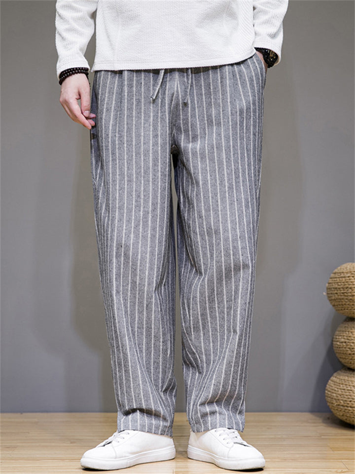 Spring Autumn Men's Fashionable Drawstring Striped Pants