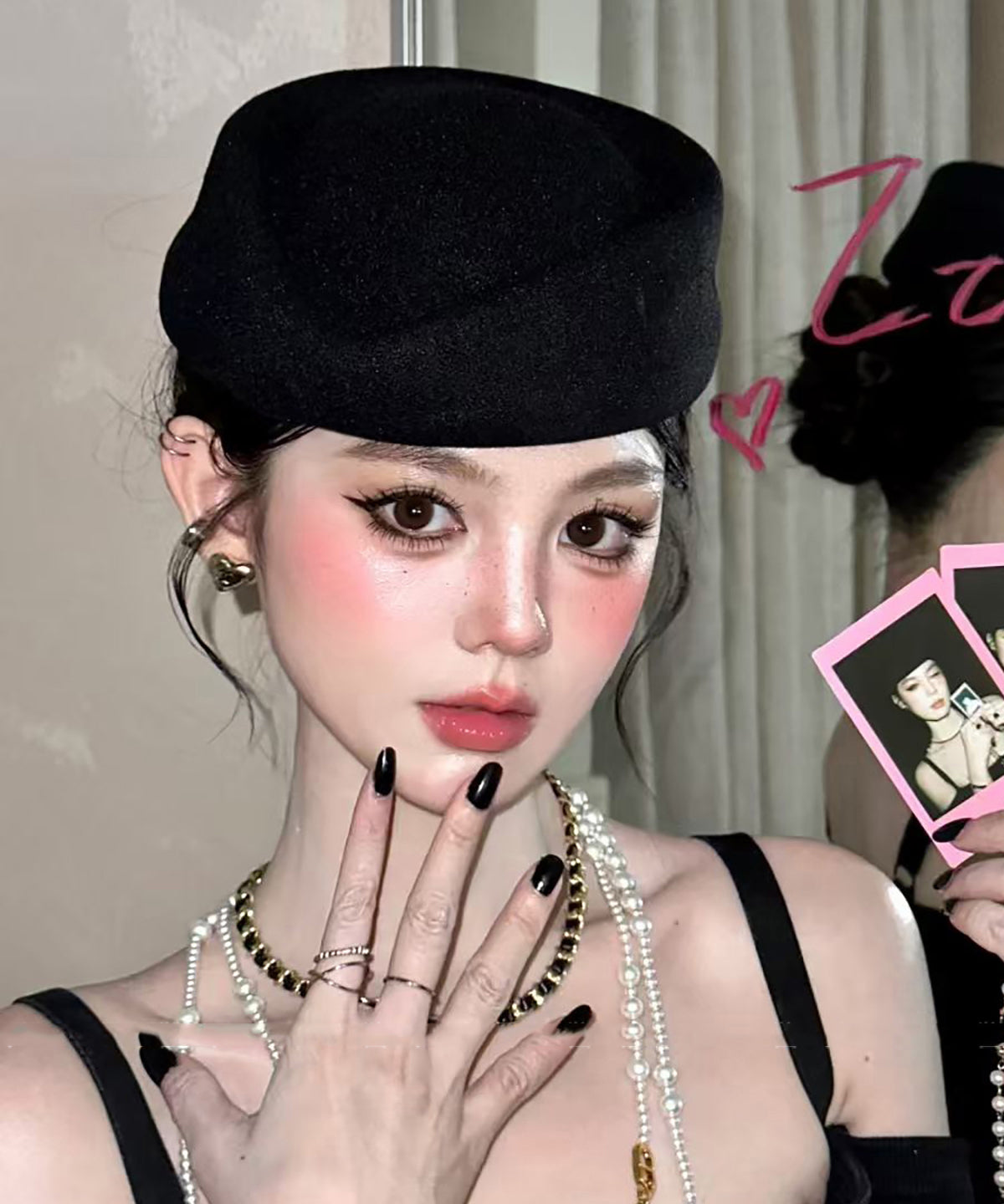 Boina de lana negra estilo sombrero