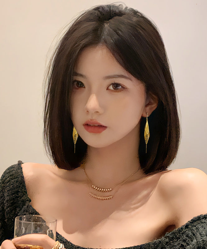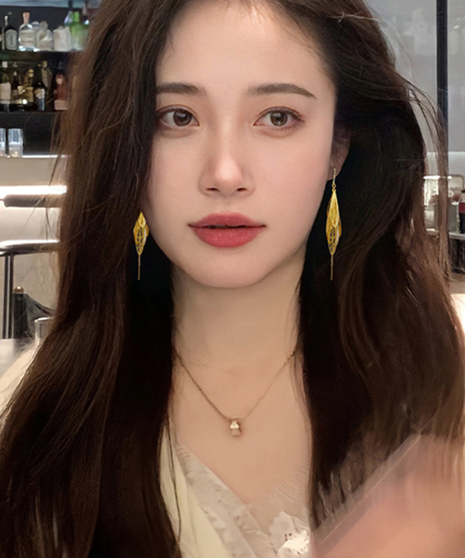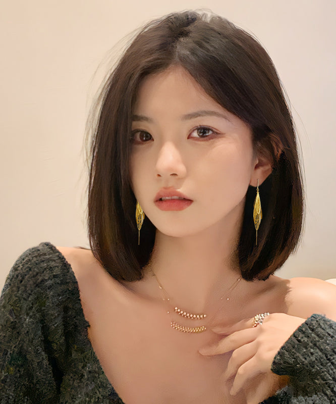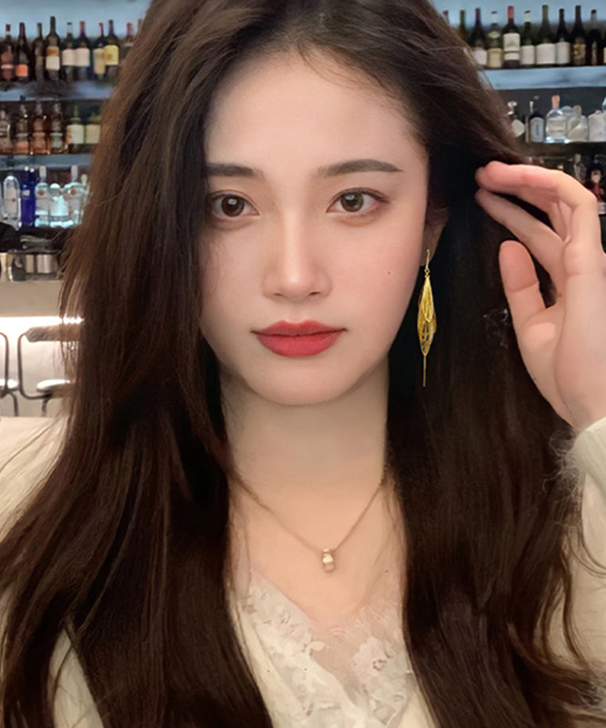 Elegantes pendientes colgantes con borlas huecas de aleación de oro