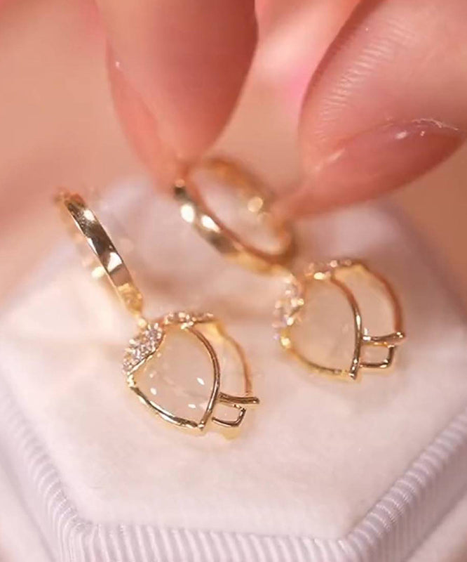 Elegantes pendientes colgantes de circonita con piedra de ojo de gato y cobre dorado