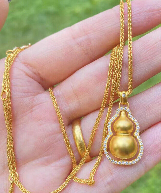 Elegante collar con colgante de calabaza dorada y cobre