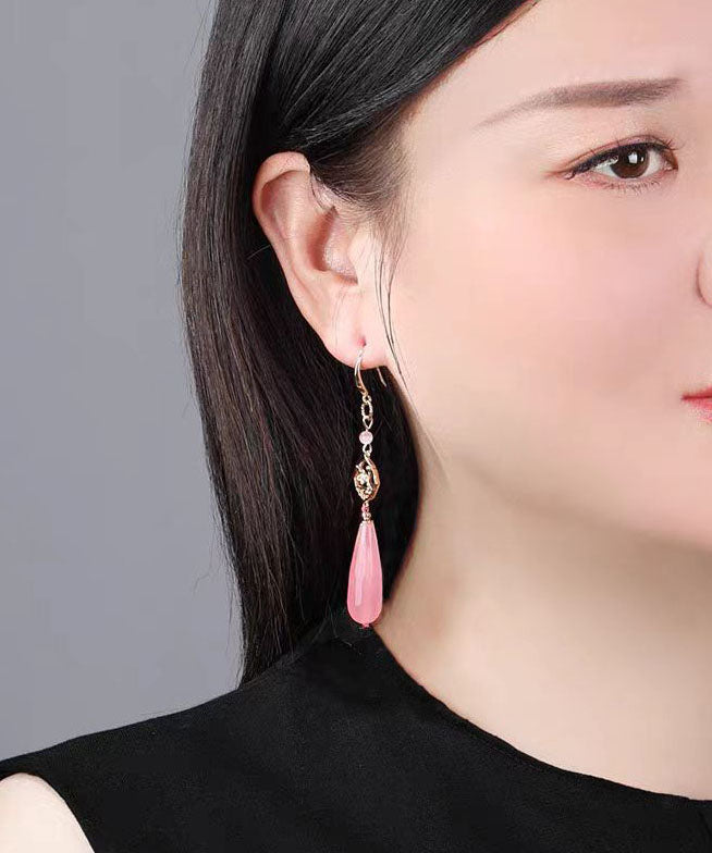 Elegantes pendientes de gota de agua de calcedonia en aleación de plata de ley rosa