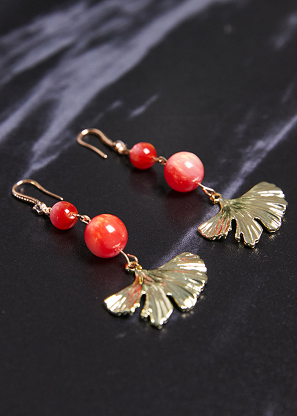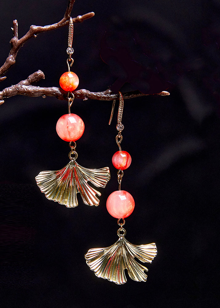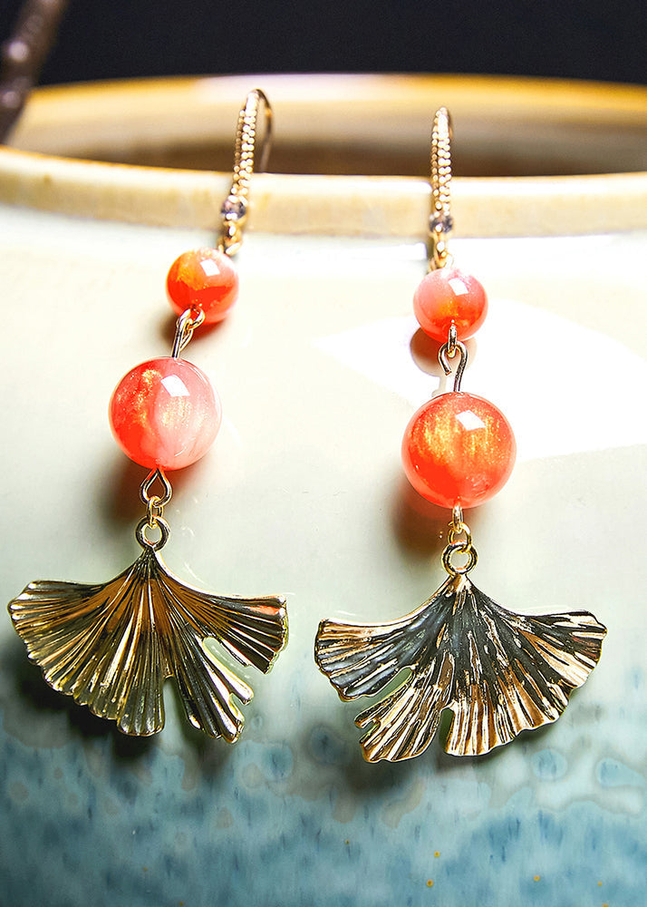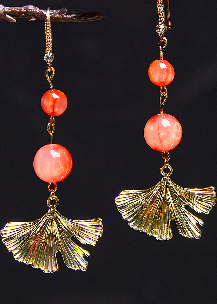 Pendientes colgantes únicos en forma de abanico de oro de 14 quilates, nuevo estilo 2024