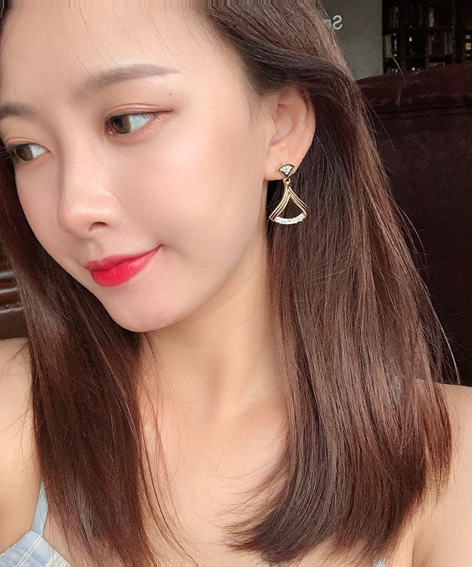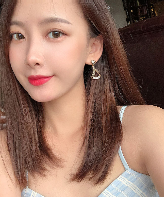 Hecho de fina aleación de plata esterlina con forma de abanico con gotas de aceite de circón.