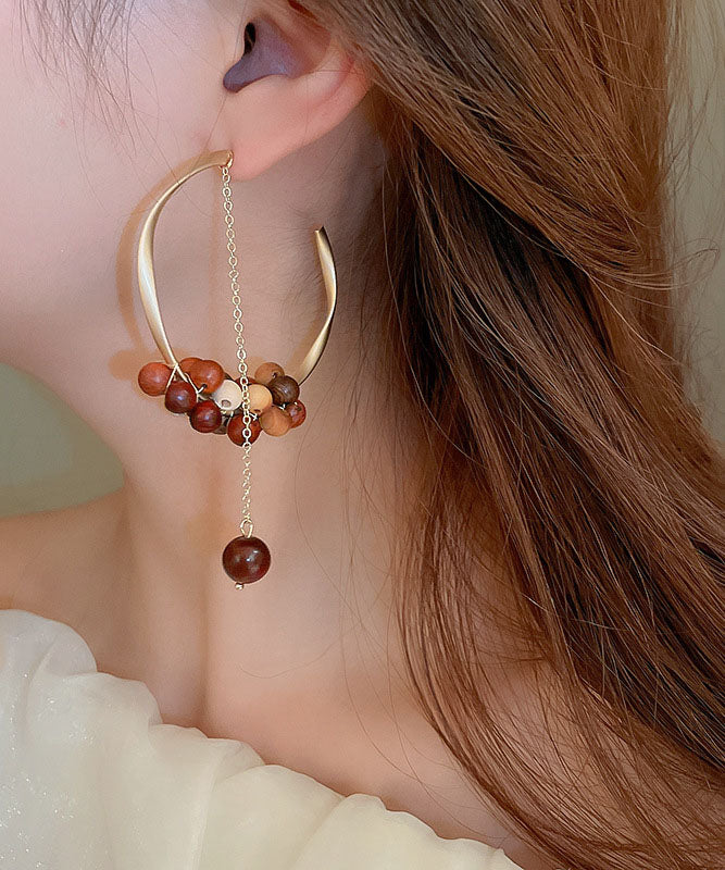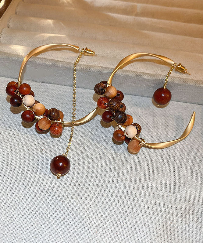 Pendientes de aro con borlas en forma de C y esfericidad de sándalo y aleación de café únicos