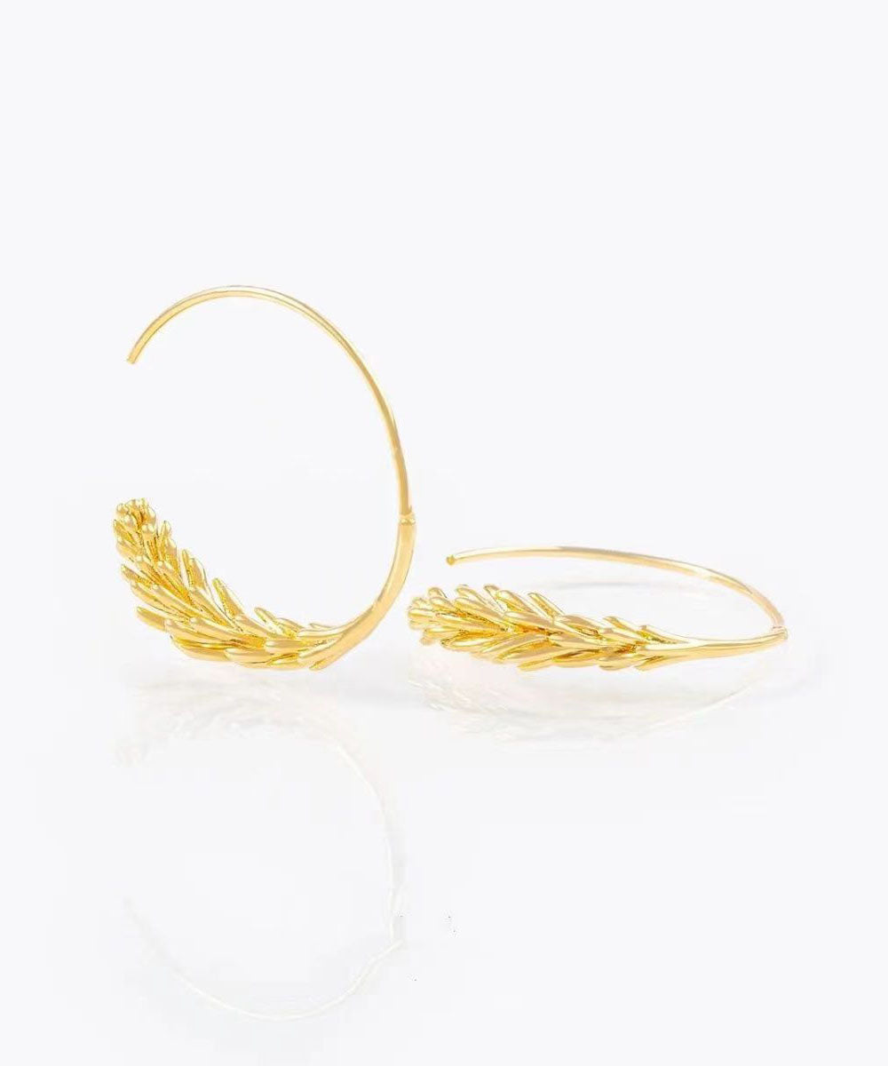 Pendientes de aro únicos con espigas de trigo doradas en plata de ley