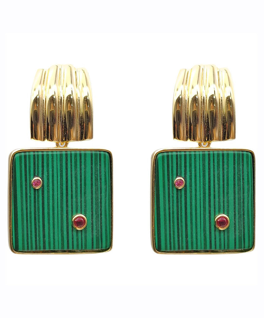 Realizado en fina plata de ley dorada con incrustaciones de malaquita cuadrada.