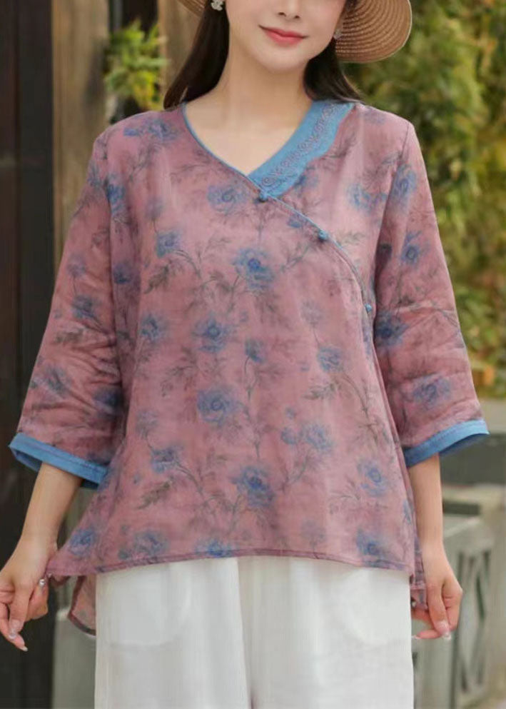 Pulsera de lino con estampado de botones chinos marrón vintage y patchwork con mangas