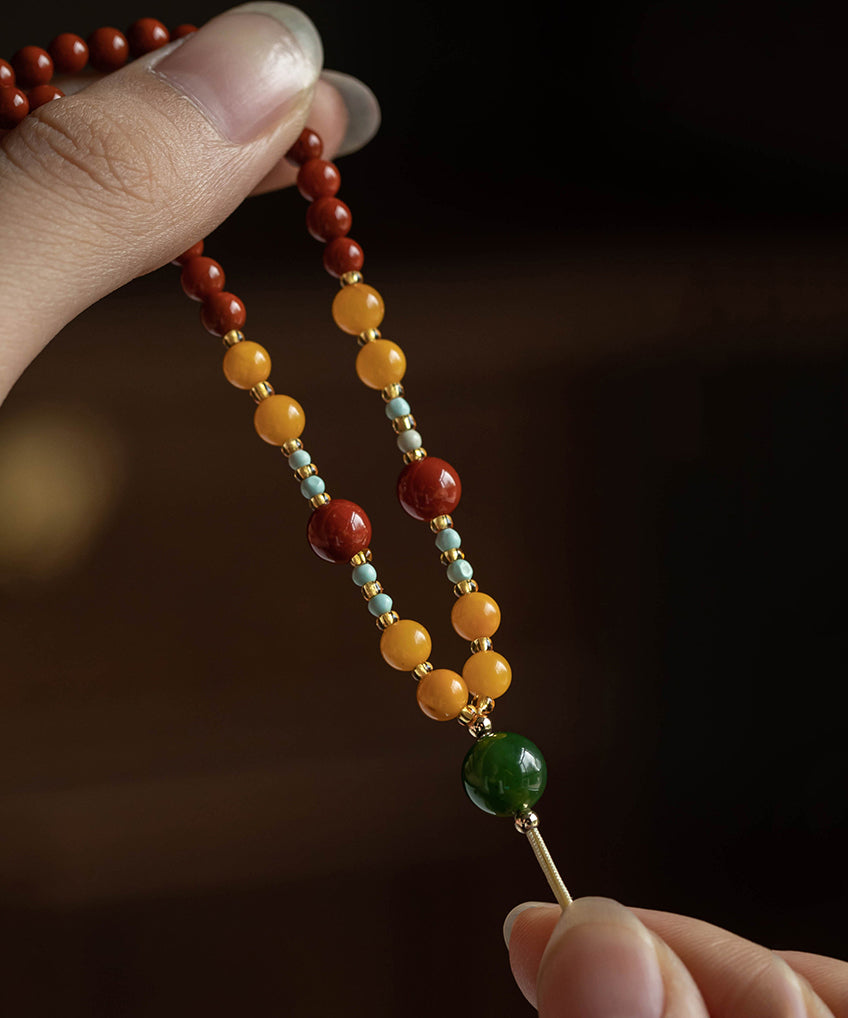 Collar vintage con colgante de cera de abejas y ágata roja tejida a mano