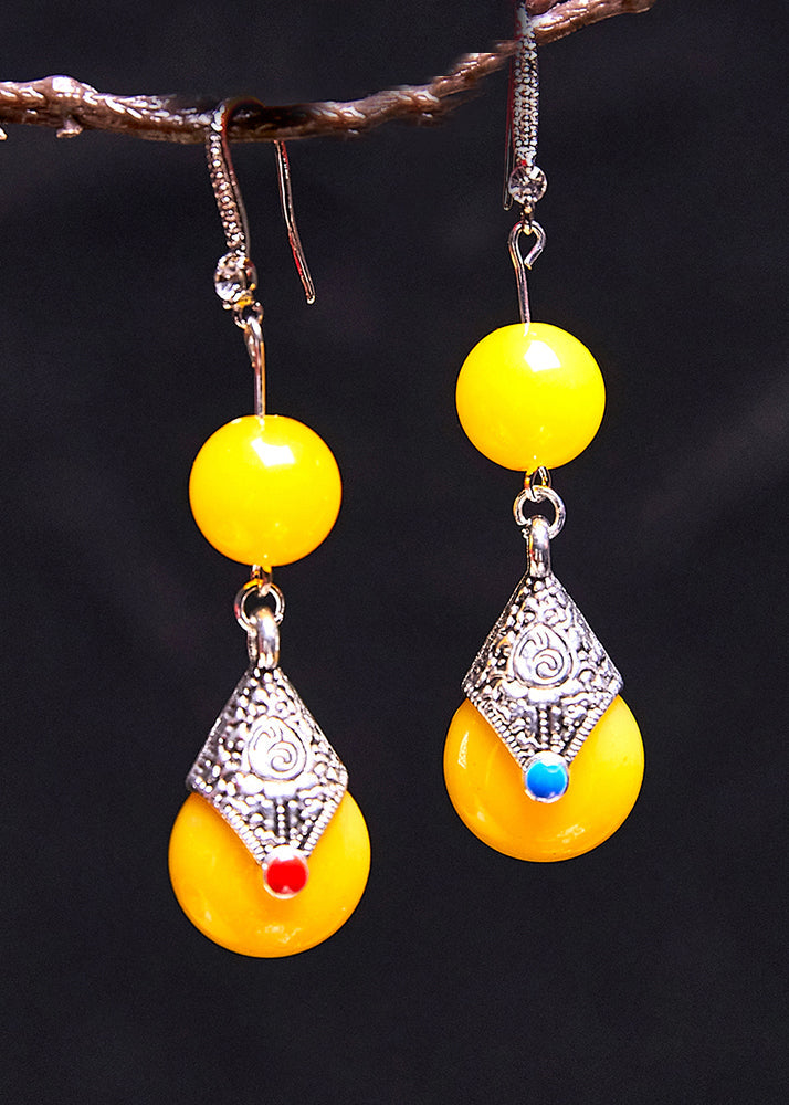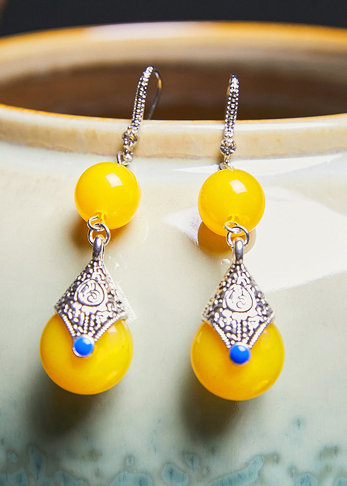 Pendientes colgantes vintage de circonita de cera de abeja amarilla (nuevo estilo 2024)