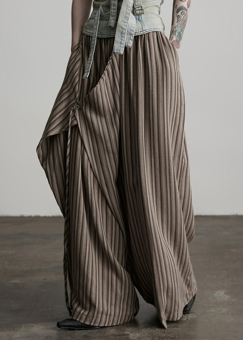 Pantalones de algodón de dos piezas con rayas y bolsillos color café para mujer, primavera