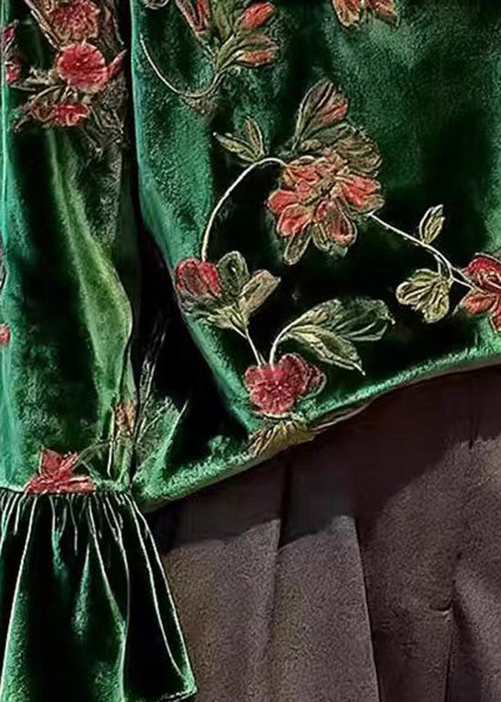 Women Green O Neck Print Patchwork Velour Blouses Spring