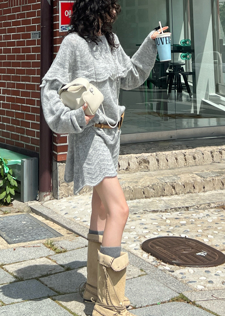 Suéter de punto calado con volantes de morera para mujer, invierno