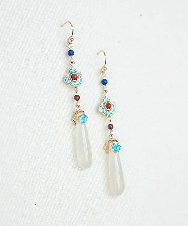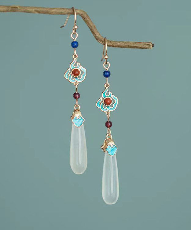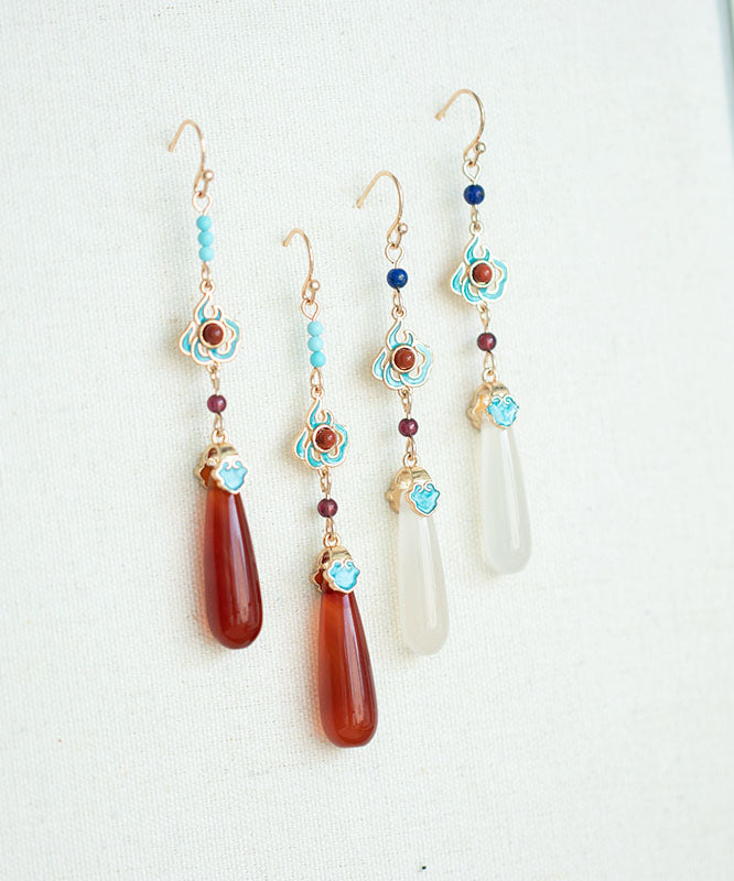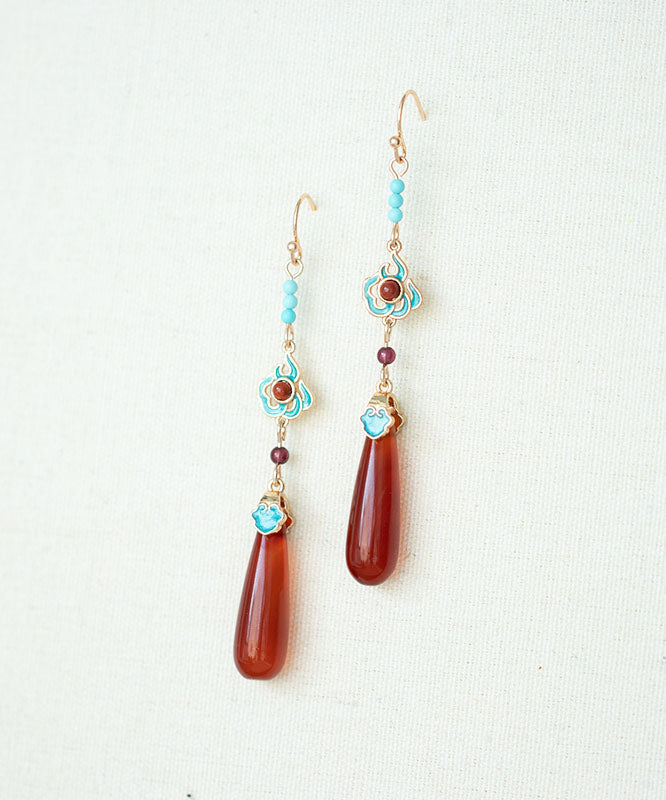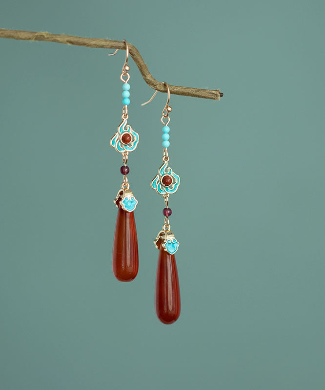 Pendientes colgantes de plata de ley roja con ágata turquesa y granate para mujer