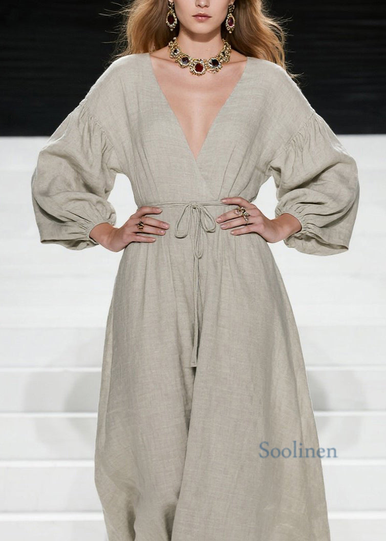 Vestido largo de algodón con cuello en V y cordones para mujer, de primavera
