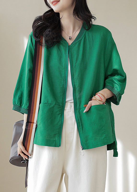 Abrigos finos de lino con bolsillos amarillos y cremallera de patchwork con mangas de pulsera