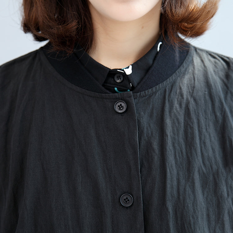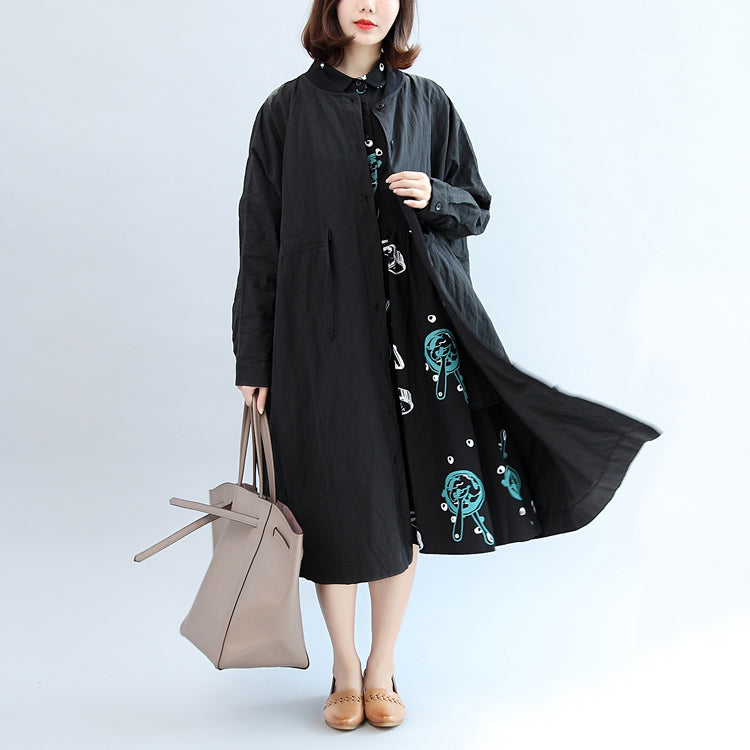 2017 schwarzer lässiger Baumwollmantel plus Größe einzigartige Outwear Langarmkleidung